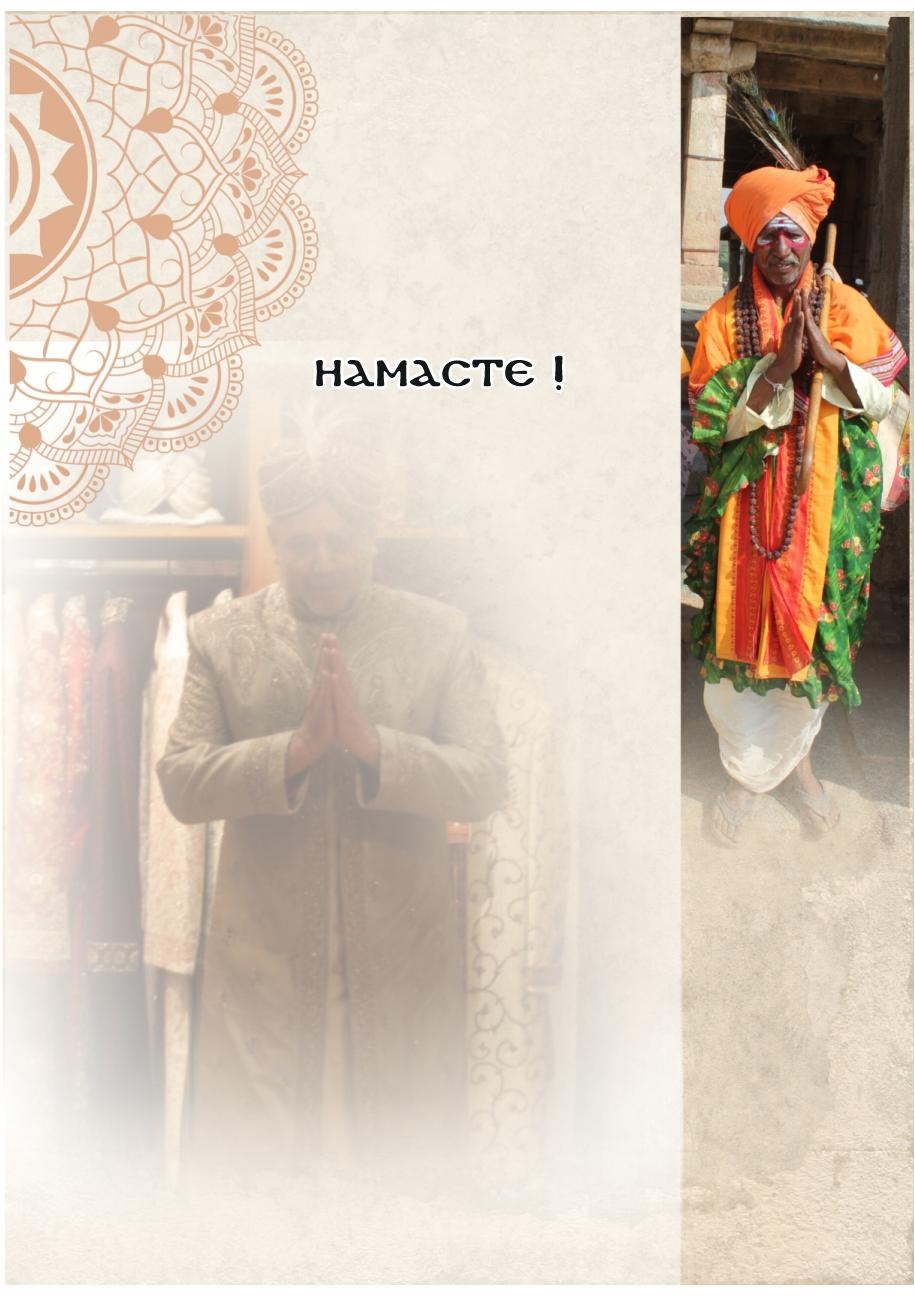 късно си избра да бъда Буда, но и Вашко вървеше. Дланите на Раджеш продължаваха да бъдат събрани и на мен ми се щеше да му кажа, както навремето в казармата „Свободно, остави!“, но повторих поздрава на новодошлия – „Намасте“. Той сякаш това и чакаше. Хвърли се на врата ми и братски ме прегърна. „В Индия „намасте“ е онова, което ще ти кажат при всяка среща“ – съобщи Раджешко. „Дори само жестът на свитите длани и лекият поклон, наречен анджали мудра, носи същото послание. „Намасте“ е на санскрит, продължи той, и означава „Божественото в мен те приветства и се свързва с божественото в теб.“ Понякога в Индия ще чуеш и „Намаскар“ или „Намаскарам“, което си е пак същото. Думата „намас“ се среща във ведическата литература и се появява със значението „почитам, обожавам“.