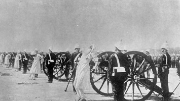 Паралелът с нашата история не свършва дотук. През 1857 г. избухва едно от най-кървавите въстания в индийската история. Никога няма да забравя една картина от училищните ми буквари – „Потушаване бунта на сипаите“: привързаните към дулата на оръдията индийци очакват английския командир в парадна униформа да даде заповед за стрелба. Картината е на Василий Верешчагин, руски художник, онзи, дето изрисува и „На Шипка всичко е спокойно“. Картината не е известна в Индия. Откупена е от Британското правителство и е унищожена. Поводът за бунта, може и да ни звучи смешно – войниците индийци на английска служба, наречени сипаи, отказват да ползват новите муниции, в които има свинска мас и говежда лой. Англичаните с презрение се отнасят към религиозните предразсъдъци на туземците и, убедени в своята непогрешимост, не отстъпват – и бунтът започва. Въстанието обхваща голяма част от Северна Индия и много скоро исканията прерастват в политически. Бунтът създава и своите легендарни герои – принцеса (Рани) Лакшми Баи става символ на борбата на индийския народ срещу английския деспотизъм.